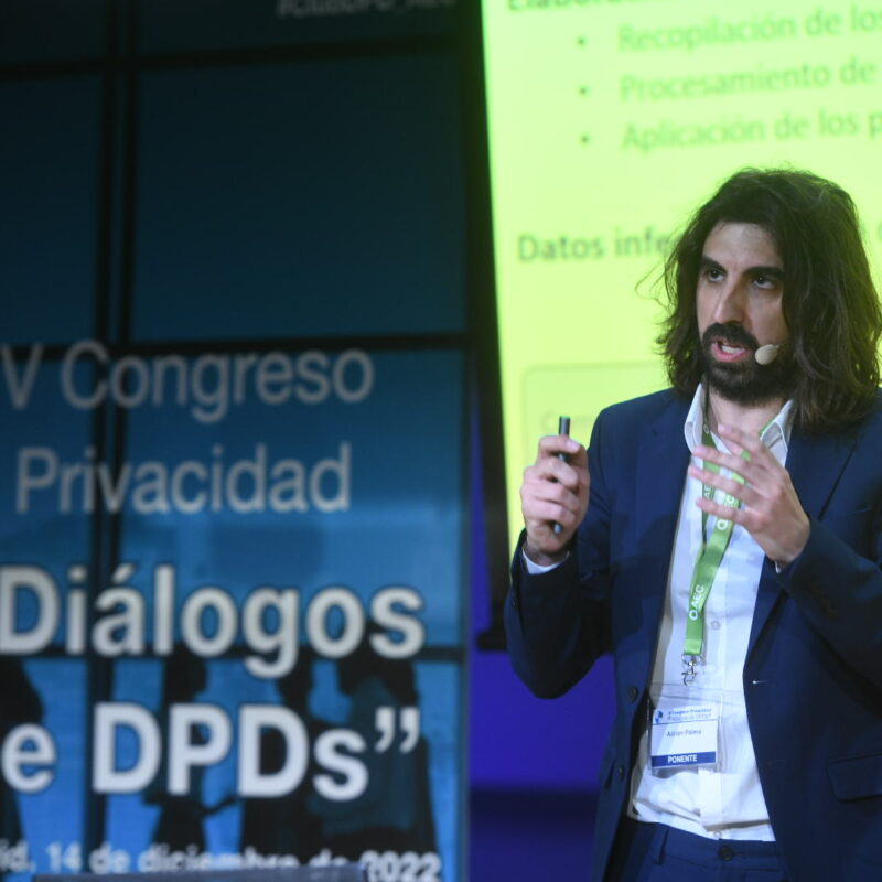 Adrián Palma, Profesor de Derecho Administrativo de la Universidad de Valencia y miembro del área de privacidad de OdiseIA, fue el encargado de abrir la jornada con la ponencia “El cumplimiento de la protección de datos de carácter personal en el ciclo de vida de los sistemas de IA: Una aproximación práctica para los DPD” que habló sobre las implicaciones legales presentes durante el ciclo de vida de los sistemas de inteligencia artificial tomando como referencia la normativa de protección de datos personales. Poniendo especial énfasis en la importancia del principio de privacidad desde el diseño en las fases iniciales del desarrollo de los sistemas de IA. Y, por último, destacó los retos que supondrá para los DPD la integración y superposición del futuro reglamento de inteligencia artificial y el Reglamento General de Protección de Datos.