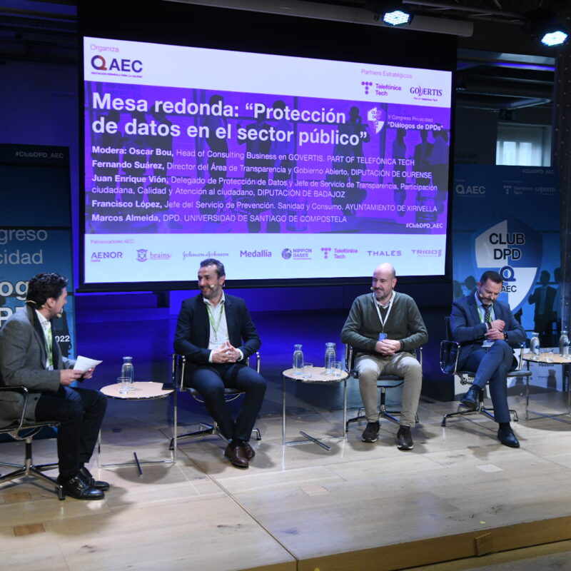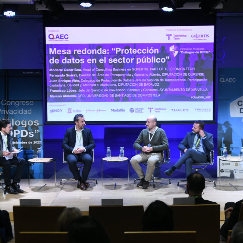 A mediodía, y tras un espacio para el networking, Oscar Bou, Head of Consulting Business en Govertis, moderó la mesa “Protección de datos en el sector público” que abordó, entre otros asuntos, el Esquema Nacional de Seguridad de la mano de Fernando Suárez, Director del Área de Transparencia y Gobierno Abierto de la Diputación de Ourense; Juan Enrique Vión, Delegado de Protección de Datos y Jefe de Servicio de Transparencia, Participación ciudadana, Calidad y Atención al ciudadano de la Diputación de Badajoz; Francisco López, Jefe del Servicio de Prevención Sanidad y Consumo del Ayuntamiento de Xirivella; y Marcos Almeida, DPD de la Universidad de Santiago de Compostela.