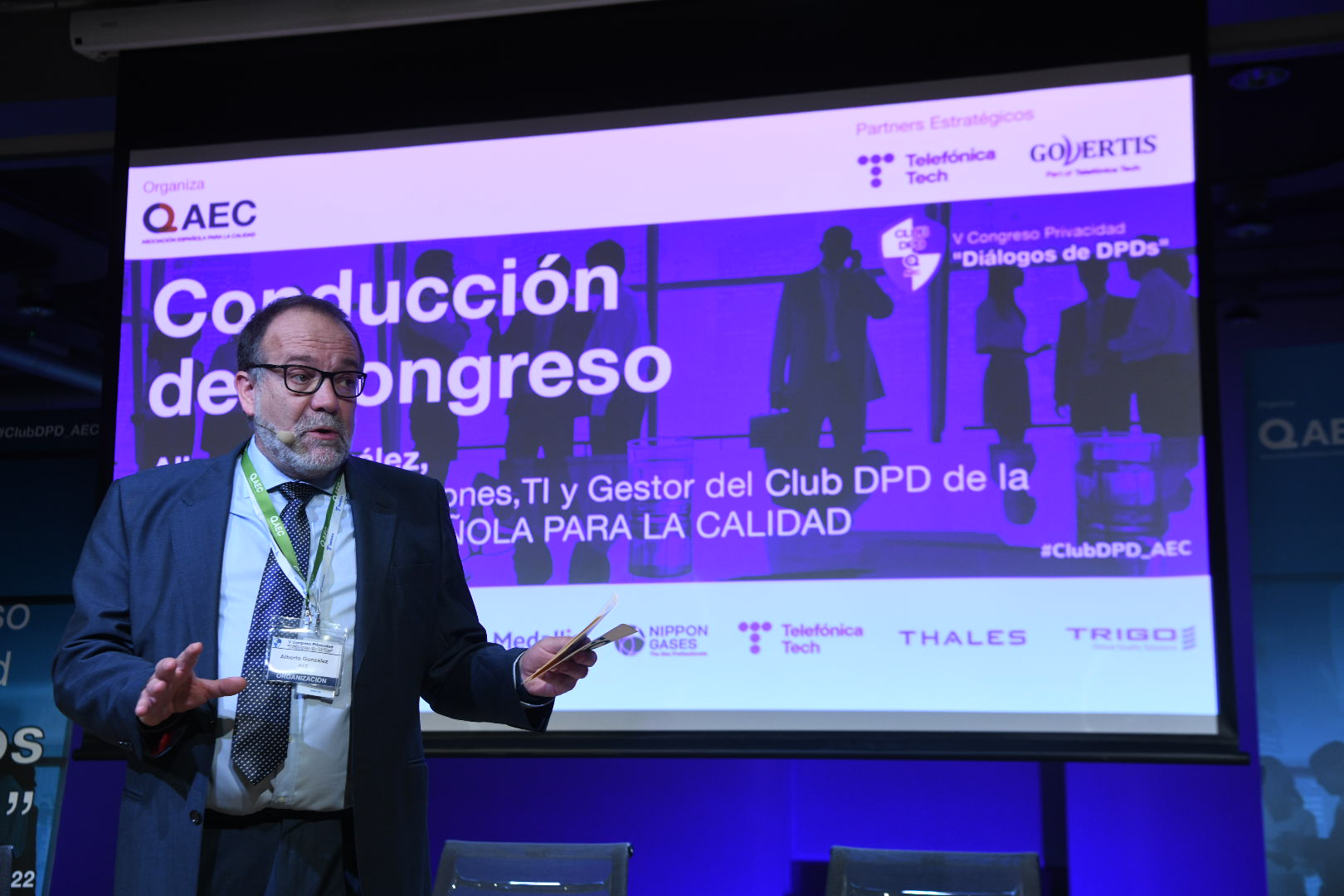 El Club del DPD de la Asociación Española para la Calidad (AEC) celebró ayer 14 de diciembre el “V Congreso Privacidad “Diálogos DPD´s” en el Espacio Fundación Telefónica, Madrid. La cita, que contó con más de 100 asistentes presenciales y más de 500 visualizaciones online, estuvo a cargo de Alberto González, director de Operaciones, TI y Gestor del Club DPD de la AEC, que ejerció como conductor del encuentro que se ha convertido en un espacio de referencia para el sector.