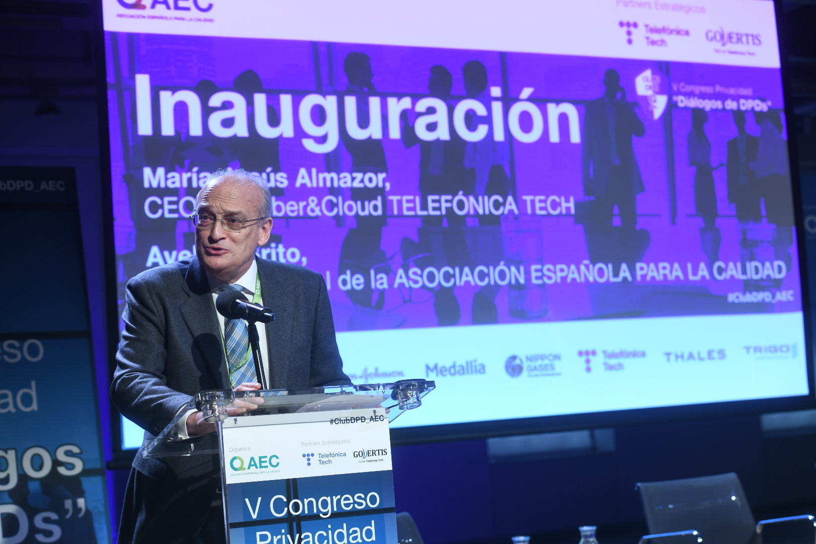 Con la colaboración de Telefónica Tech y Govertis como Partners Estratégicos la cita arrancó con la bienvenida institucional de María Jesús Almazor, CEO de Cyber&Cloud de Telefónica Tech, y Avelino Brito, director general de la Asociación Española para la Calidad. Ambos representantes institucionales coincidieron en la importancia de la ciberseguridad y el tratamiento de los datos de una forma responsable en estos momentos de transformación digital. Y Avelino Brito puso también el foco en el “factor humano” poniendo de relieve la importancia que tiene su figura, y la excelente labor de la Agencia de Española de Protección de Datos.
