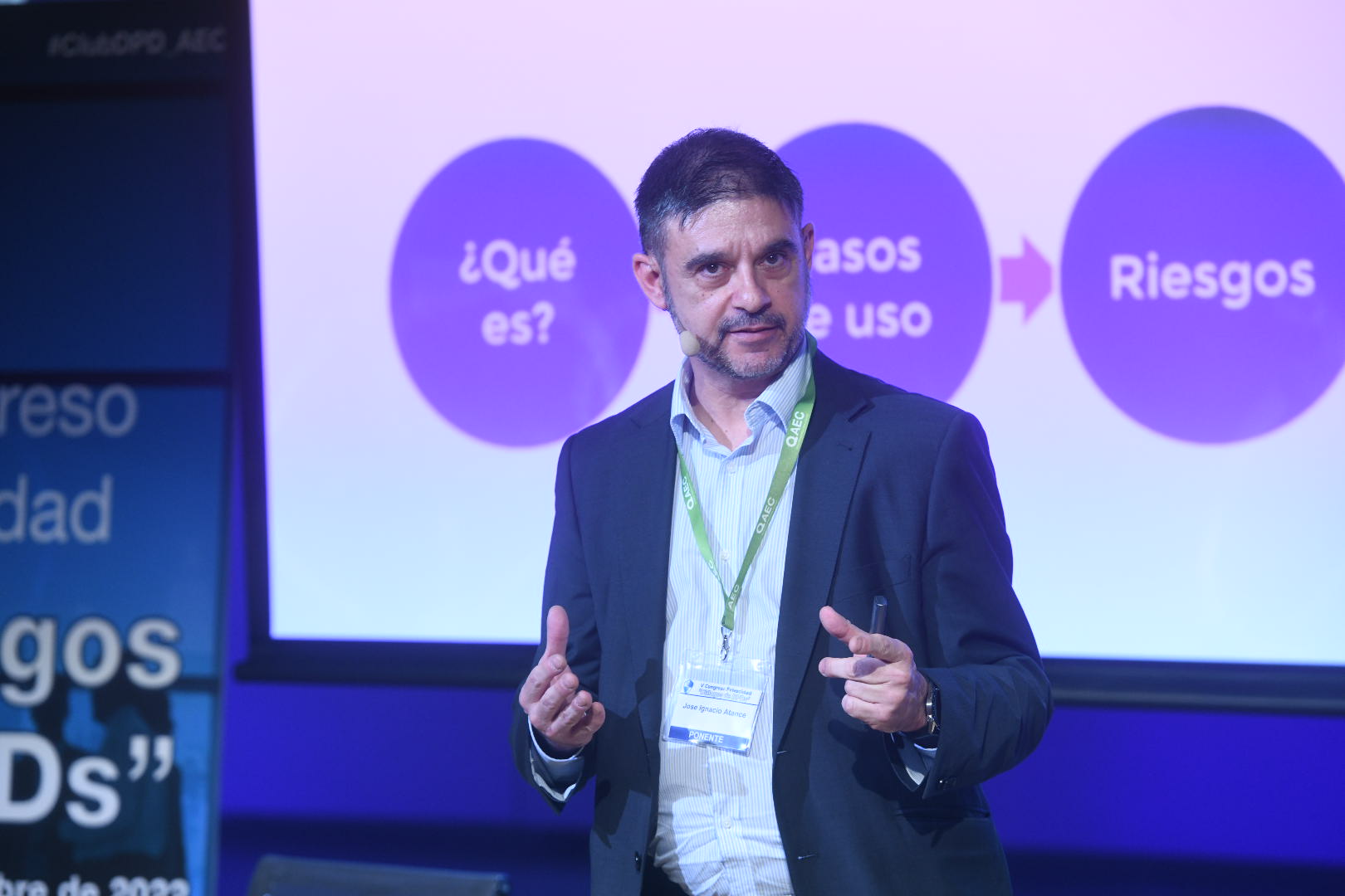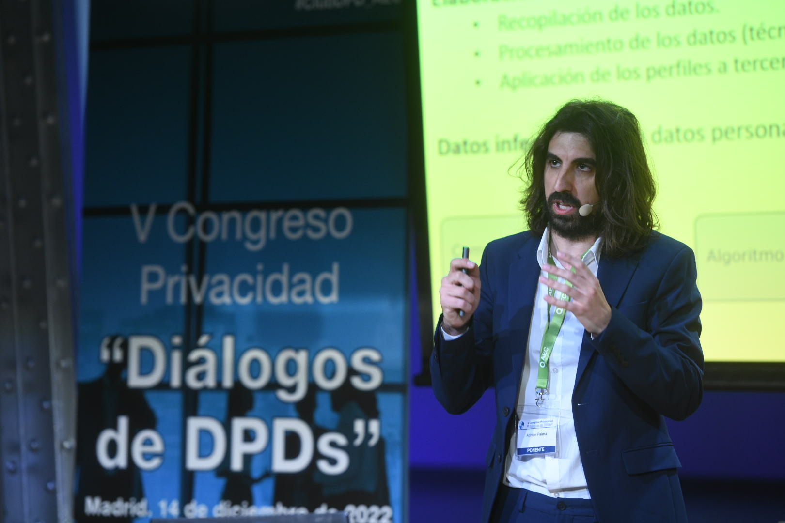 Adrián Palma, Profesor de Derecho Administrativo de la Universidad de Valencia y miembro del área de privacidad de OdiseIA, fue el encargado de abrir la jornada con la ponencia “El cumplimiento de la protección de datos de carácter personal en el ciclo de vida de los sistemas de IA: Una aproximación práctica para los DPD” que habló sobre las implicaciones legales presentes durante el ciclo de vida de los sistemas de inteligencia artificial tomando como referencia la normativa de protección de datos personales. Poniendo especial énfasis en la importancia del principio de privacidad desde el diseño en las fases iniciales del desarrollo de los sistemas de IA. Y, por último, destacó los retos que supondrá para los DPD la integración y superposición del futuro reglamento de inteligencia artificial y el Reglamento General de Protección de Datos.